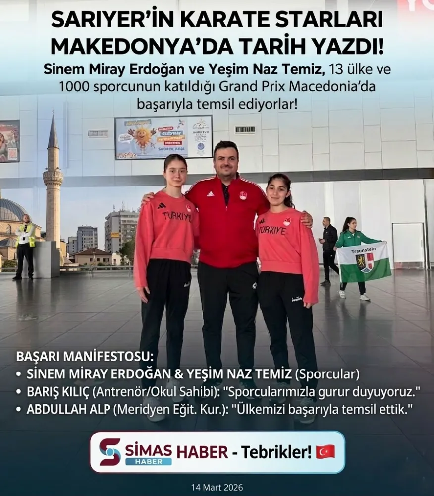 Sarıyer’in spor ve eğitimdeki başarısı, sınırlarımızı aşarak Balkanlar’a taşındı. Meridyen Eğitim Kurumları öğrencileri ve Barış Kılıç Karate Okulları sporcuları olan Sinem Miray Erdoğan ve Yeşim Naz Temiz, Makedonya’da düzenlenen dev turnuvada kulüplerini, okullarını ve ay-yıldızlı bayrağımızı gururla temsil ediyor.