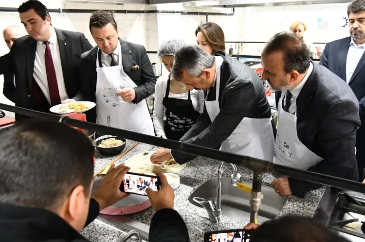 Törende protokol üyeleri, Gastronomi Merkezi’ni ziyaret ederek usta öğreticilerden bilgi aldı ve yöresel ürün hazırlığına katıldı.