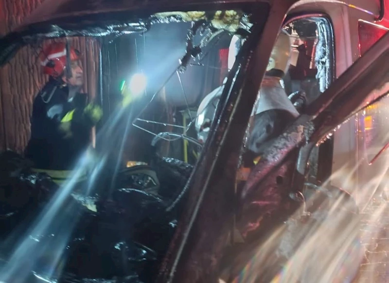 Kocaeli’nin Derince ilçesinde seyir halindeki işçi servisi alev alev yandı. Yangın itfaiye ekiplerince söndürülürken, işçi servisi kullanılamaz hale geldi.