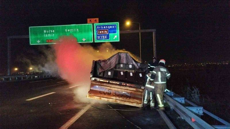 Olay, saat 20.30 sıralarında Gebze-Orhangazi-İzmir Otoyolu üzerinde meydana geldi. Alınan bilgilere göre, İstanbul istikametinden Bursa istikametine doğru gitmekte olan Alper Ü. idaresindeki 16 MCG 05 plakalı demir profil yüklü tırın arka lastikleri alev aldı. Büyüyen alevler kısa sürede dorseye sıçradı. Yangını fark eden tır sürücüsü aracı emniyet şeridine çektikten sonra dorseyi çekiciden ayırdı. Yangın söndürme tüpü ile müdahale eden sürücü alevleri kontrol altına alamayınca durumu itfaiye ekiplerine bildirdi. Olay yerine gelen itfaiye ekipleri yangını kısa sürede söndürürken, dorsede büyük çapta maddi hasar meydana geldi. Olayla ilgili soruşturma başlatıldı.
