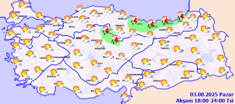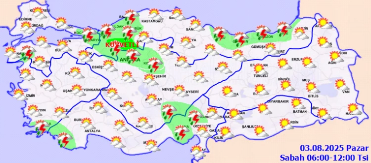 ANKARA (İGFA) - Meteoroloji Genel Müdürlüğü 03 Ağustos Pazar gününe ilişkin hava tahmin raporunu yayımladı.