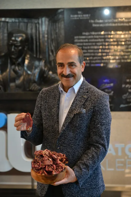Kuru domatesin başlı başına bir lezzet ve şifa deposu olduğunun altını çizen Başkan Uçak, “Kuru domates makarnalardan salatalara, kahvaltılardan çorbalara, etli yemeklerden balığa, tavuktan pizzalara kada geniş bir yelpazedeki yemeklere lezzet katıyor. Anadolu topraklarında yetişen 15 milyon ton taze domateslerden elde edilen kuru domatesleri ABD’den İtalya’ya, Kanada’dan Almanya’ya, Brezilya’dan Japonya’ya 98 ülkeye ihraç ettik. 2025 yılı sonunda 125 milyon dolara ulaşacağız. 2026 yılında hedefimiz kuru domates ihracatımızı 150 milyon doların üzerine çıkarmak olacak” ifadelerini kullandı.