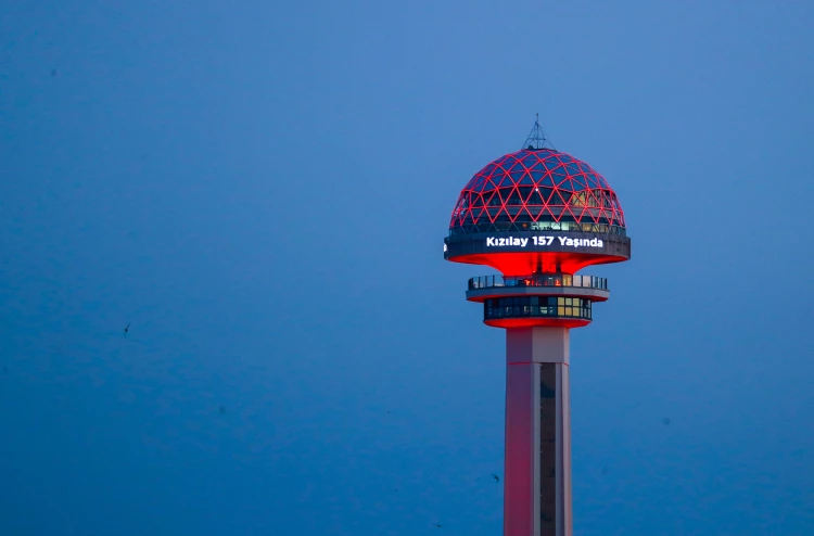 Başkent Ankara’nın simge yapılarından Atakule’de ise hem özel aydınlatma yapıldı hem de Kızılay’ın kuruluş yıldönümüne yönelik hazırlanan görseller kule ekranlarında paylaşıldı.