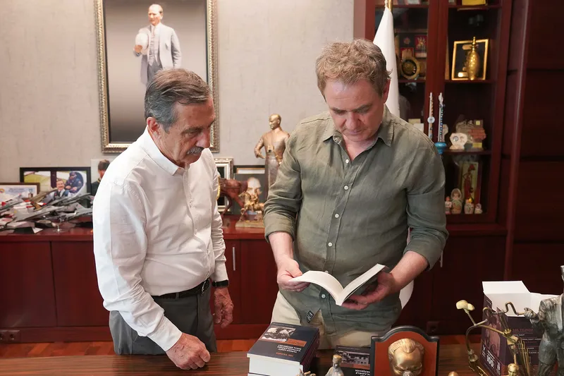 Araştırmacı yazar Sinan Meydan, yeni yayımlanan ‘Atatürk’ün Mirası Laik Cumhuriyet’ kitabını imzalayarak Tepebaşı Belediye Başkanı Ahmet Ataç’a gönderdi.
