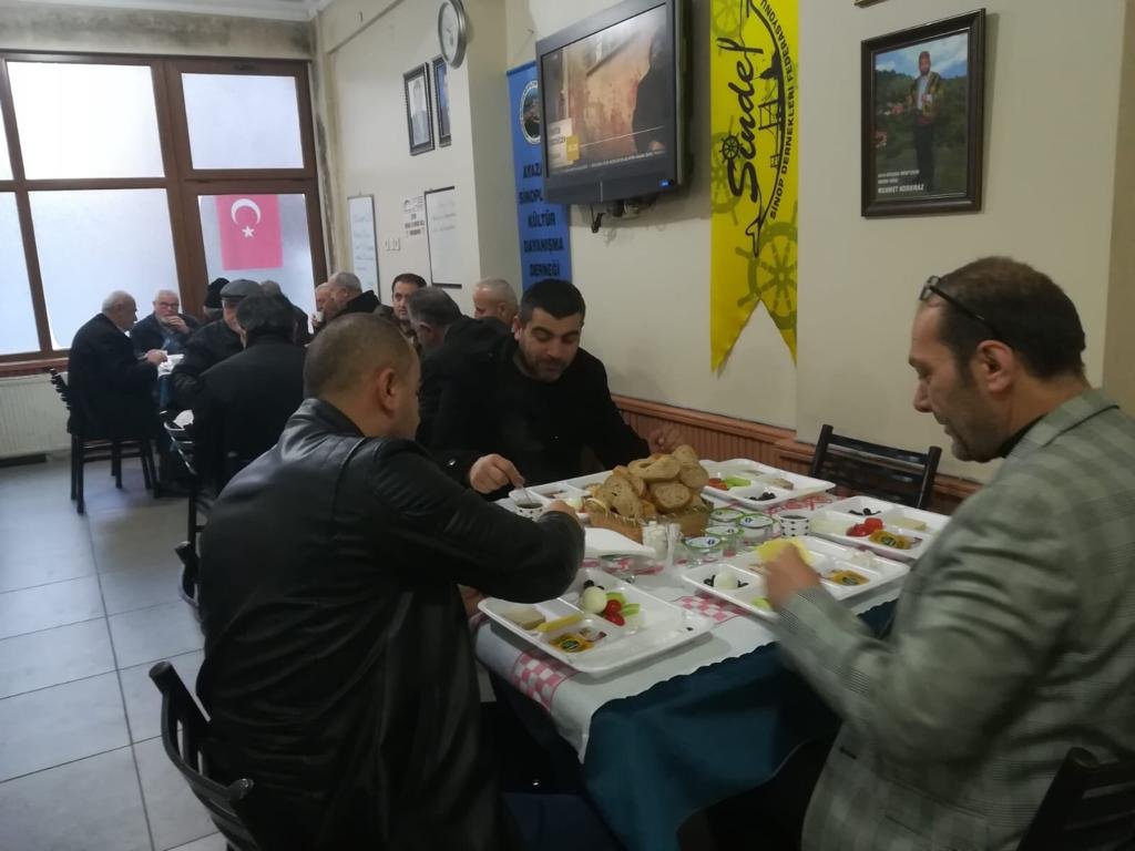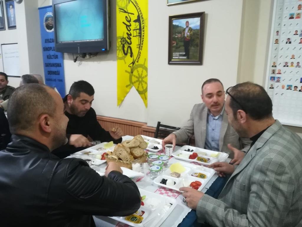 Ayazağa Mahallesinde bulunan Ayazağa Sinoplular Yardımlaşma ve Dayanışma Dernek merkezinde düzenlenen kahvaltı etkinliğine çok sayıda vatandaş katılırken sergilenen birlik ve beraberlik görüntüsü dikkat çekiciydi. Kahvaltı Etkinliğine Sarıyer Belediye Meclis Üyesi Özkan Sucu ve Genç Müsiad Otomotiv Sektör Başkanı Yusuf Ersoy'da katıldı.