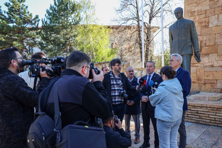 Ardından söz alan Ticaret ve Sanayi Odası Başkanı Zeki Özdemir ise asıl mesleğinin mermer üreticiliği olduğunu hatırlatarak “Dünyada marka olan sarı travertenimiz Sivas’ın bir simgesi durumunda. Anıt alanını bu doğal taşımızla yeniden kaplamak için firma olarak elimizden gelen desteği sağlamaya hazırız dedik. Bugün projemiz hazır, inşallah hayata geçireceğiz. Türkiye’nin hiçbir şehrinde böylesi bir meydan yok. Bir tarafında Selçuklu, bir tarafında Osmanlı, bir tarafında ise Cumhuriyet dönemi eserlerimiz yer alıyor. Bu eserlerimizi korumak ve yaşatmak için emek ve katkı sağlayan herkese teşekkür ediyorum. Bu çalışmanın şimdiden hayırlı olmasını diliyorum” şeklinde konuştu.