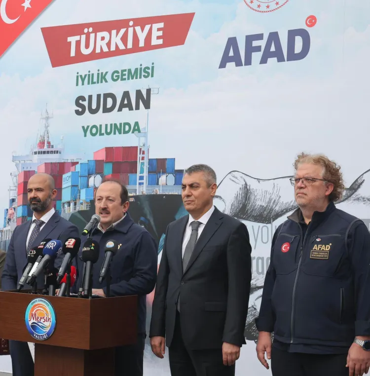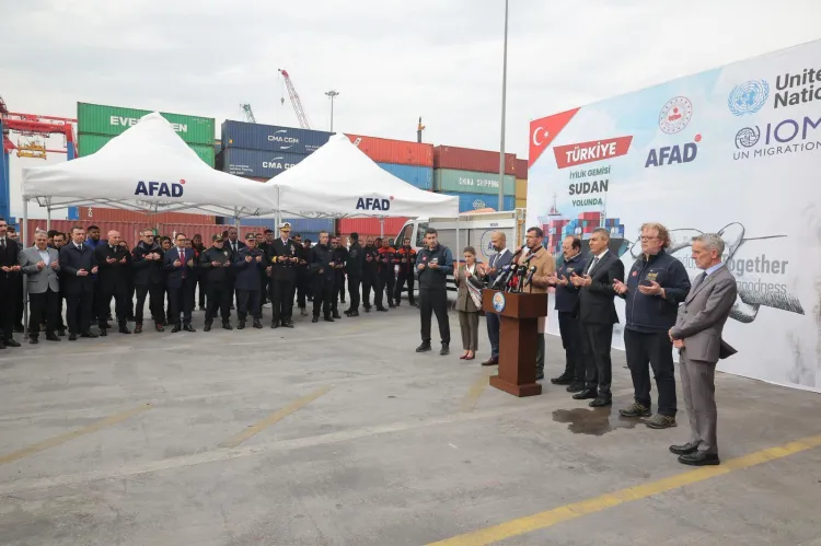 MERSİN (İGFA) - Sudan’da uzun süredir devam eden iç çatışmalar, seller, baraj yıkılmaları, kuraklık ve yangınlar nedeniyle derinleşen insani kriz karşısında Türkiye, dost ve kardeş Sudan halkına desteğini sürdürüyor. Bu kapsamda AFAD koordinasyonunda hazırlanan “İyilik Gemisi”, Mersin Limanı’ndan düzenlenen programla Sudan’a uğurlandı.