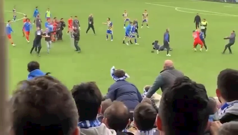 Hakemin maçı bitirmesinin ardından iki takım oyuncuları birbirine girdi. Tekme ve tokatların havada uçuştuğu kavgayı gören bazı taraftarlar sahaya atladı. O anlar, maçı izlemeye gelen bir taraftar tarafından anbean kameraya alındı. Kavgayı, polis ekipleri güçlükle ayırdı.