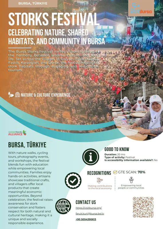 Good Travel Experiences rehberinde yer almak, Bursa’nın yalnızca geçmişine değil, geleceğine de sahip çıkan bir turizm anlayışının uluslararası düzeyde tescillenmesi anlamına geliyor. Bu başarı, Bursa’nın doğa, kültür ve insanı merkeze alan bütüncül yaklaşımıyla, geleceğin sorumlu turizm destinasyonları arasında öncü bir konum edindiğini bir kez daha ortaya koyuyor. Bursa Leylek Şenliği, doğa temelli turizmin en özgün örneklerinden biri olarak biyolojik çeşitlilik ve kuş göçü farkındalığını artırırken; Aktopraklık Arkeofest, arkeolojik mirası halkla buluşturan, çocuklara ve gençlere yönelik interaktif öğrenme deneyimleriyle kültürel sürdürülebilirliği güçlendiriyor.