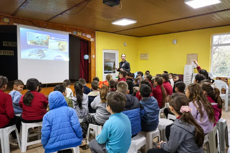Orhangazi İlkokulu’nda düzenlenen etkinlikte uzman eğitmenler, suyun doğadaki döngüsünden musluklara geliş aşamalarına kadar birçok konuyu miniklere aktardı.