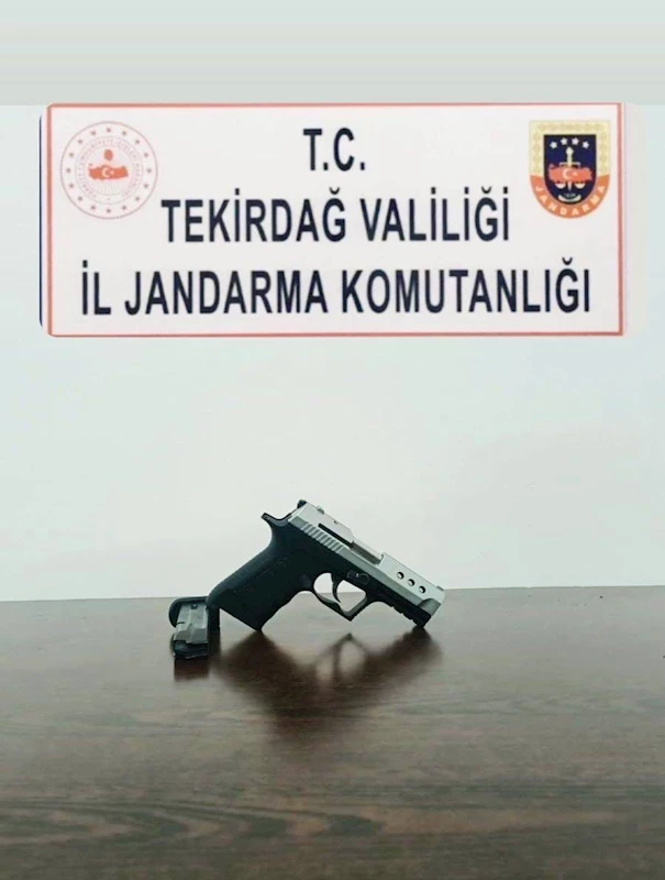 Tekirdağ İl Jandarma Komutanlığınca Ergene ilçesi Velimeşe Mahallesinde M.B. isimli şahsın yapılan kaba üst aramasında 1 adet tabanca 1 adet şarjör ele geçirildi.