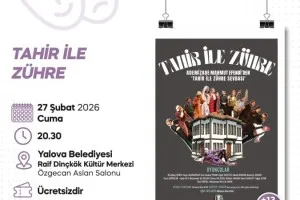 Yalova Belediyesi Kültür, Sanat ve Sosyal İşler Müdürlüğü tarafından düzenlenen yetişkin tiyatrosu etkinlikleri kapsamında "Tahir ile Zühre" adlı oyun sahnelenecek. Oyun, 27 Şubat 2026 Cuma günü saat 20.30'da Raif Dinçkök Kültür Merkezi Özgecan Aslan Salonu'nda izleyiciyle buluşacak.