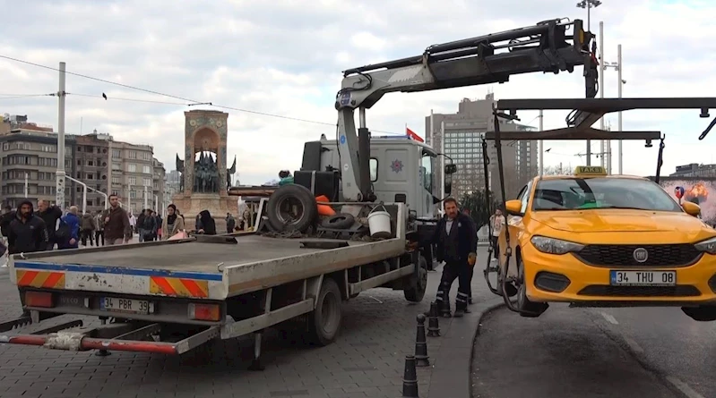 Taksim Meydanı’nda trafik polisleri tarafından ticari taksilere yönelik yapılan denetimde, 5 şoföre aracın çalışma ruhsatının kapalı olmasından dolayı toplam 32 bin 195 TL para cezası kesildi. Araçlar çekici ile otoparka götürüldü.