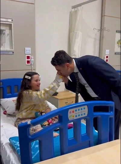 Tedavi gören minik kız çocuğuna sürpriz yaptı