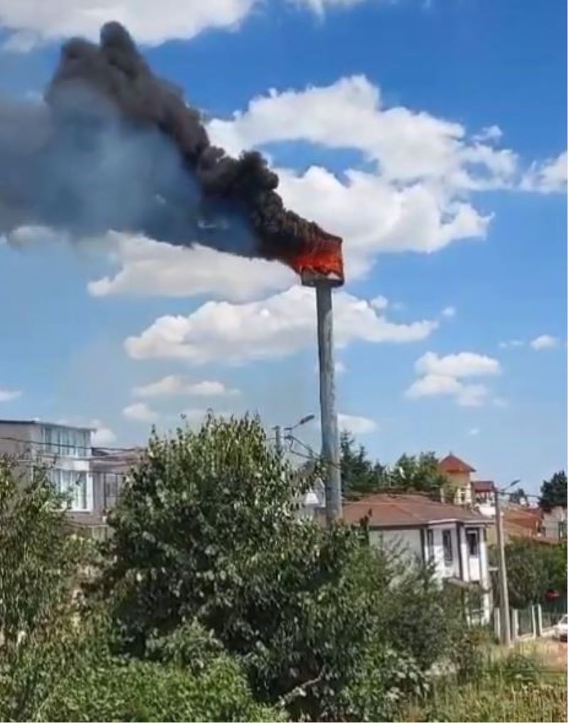 Tekirdağ’da baz istasyonu çıkan yangında alev alev yandı.