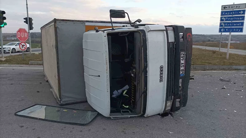 Kaza, Saray ilçesi çevreyolu üzerinde gerçekleşti. Alınan bilgilere göre, Çayla istikametinden Saray yönüne ilerleyen Mehmet C. yönetimindeki 48 SY 462 plakalı kamyona, Vize istikametinden Çerkezköy yönüne seyreden Erdem K. idaresindeki 34 ZF 8071 plakalı otomobil, Çayla kavşağı üzerinde iddiaya göre ışık ihlali yaparak çarptı. Çarpışmanın etkisiyle devrilen kamyonun sürücüsü Mehmet C. kazayı yara almadan atlattı. Ancak otomobil sürücüsü Erdem K. hafif yaralandı.