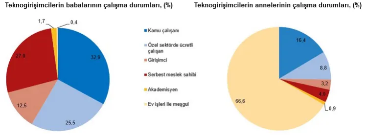 Verilere göre, teknogirişimlerin kurucu ortağı veya en yüksek paya sahip aktif ortaklarının yüzde 87,1’i erkek, yalnızca yüzde 12,9’u kadın girişimcilerden oluşuyor. Kadın girişimcilerde lisansüstü eğitim oranının görece yüksek olması dikkat çekerken, genel olarak kurucu ortakların büyük bölümü lisans ve üzeri eğitim düzeyine sahip.