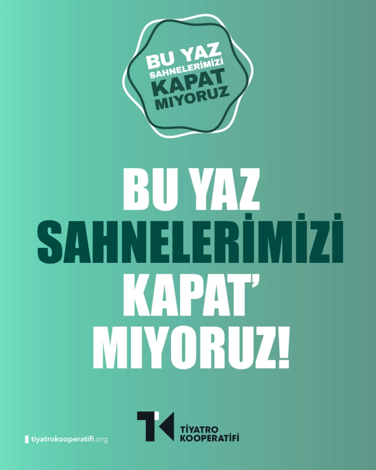 İSTANBUL (İGFA) - Tiyatro Kooperatifi, Haziran, Temmuz ve Ağustos aylarını kapsayan yaz sezonu boyunca “Bu Yaz Sahnelerimizi Kapatmıyoruz” kampanyasını başlattı.