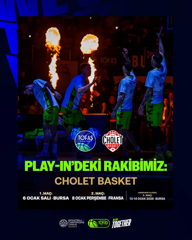 TOFAŞ Basketbol Takımı, Basketbol Şampiyonlar Ligi play-in eleme turunda Fransız temsilcisi Cholet Basket ile eşleşti. Kazananın son 16 takım arasına kalacağı seri Bursa’da başlayacak ve karşılaşmalar 6 Ocak ve 8 Ocak ile gerekmesi halinde 13-14 Ocak 2026 tarihlerinde oynanacak.