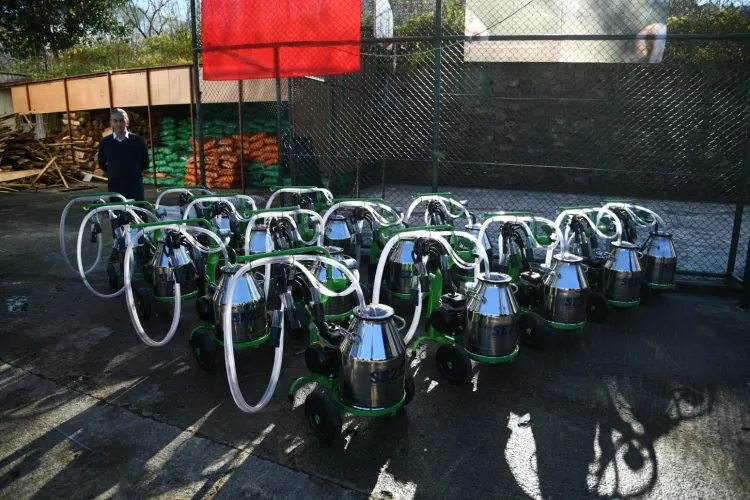 Trabzon Büyükşehir Belediyesi Tarımsal Hizmetler Dairesi Başkanlığı tarafından Şalpazarı ilçesinde süt sığırcılığı yapan 40 çiftçiye, seyyar süt sağım makinesi hibe edildi.