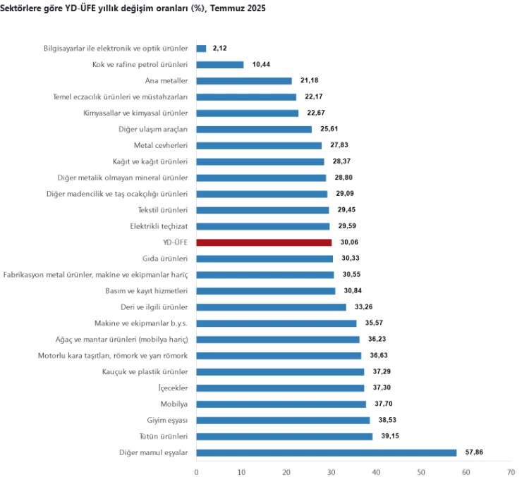 ANKARA (İGFA) - Türkiye İstatistik Kurumu (TÜİK), Temmuz 2025 Yurt İçi Üretici Fiyat Endeksi (Yİ-ÜFE) verilerini kamuoyuyla paylaştı.
