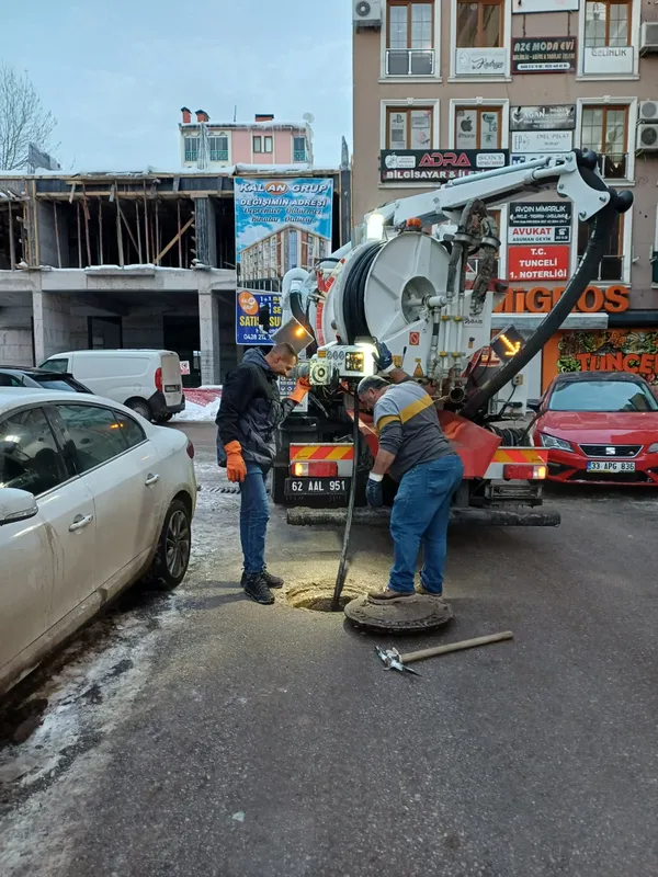 Mevsim şartları ne olursa olsun Tunceli'deki altyapı çalışmaları hız kesmeden devam ediyor. Moğultay Mahallesi Ata Sokak’ta meydana gelen ana hat arızası, ekipler tarafından vidanjör desteğiyle giderildi.