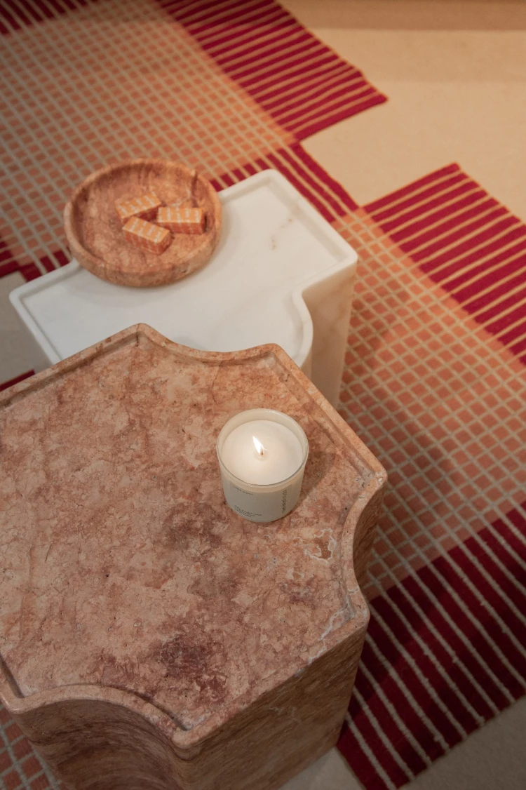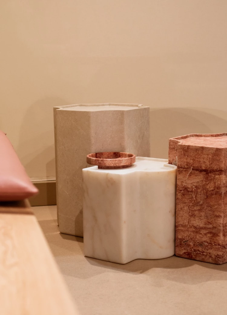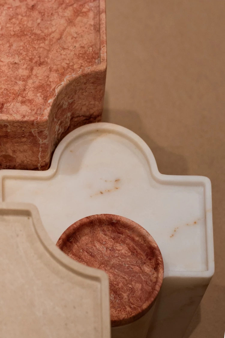 Desen, Akdeniz motiflerinden ve geleneksel mermer desenlerinden ilham alan çağdaş bir sehpa koleksiyonu olarak öne çıkıyor. Modüler yapısı ve özgün form diliyle dikkat çeken koleksiyon, 8–13 Nisan 2025 tarihleri arasında Milano tasarım haftası süresince Salone del Mobile fuar alanının içerisindeki SaloneSatellite’de sergilendi. Üç parçadan oluşan sehpa seti; Burdur Bej, Kırmızı Traverten ve Afyon Beyaz Mermer gibi yerli taşlar kullanılarak, Efesus Stone’un modern üretim tesislerinde tamamen masif bloklardan üretildi.