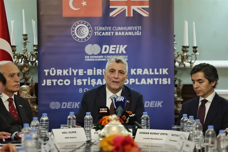 Bakan Bolat, Türkiye ve İngiltere Ekonomik ve Ticaret Ortak Komitesi (JETCO) 8. Dönem Toplantısı kapsamında Londra'da, İngiltere'de yerleşik iş insanlarıyla bir araya geldi ve basın mensuplarına açıklamalarda bulundu.
