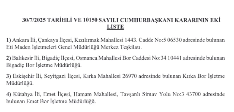 Grev ertelemesi, Ankara Çankaya’daki Eti Maden İşletmeleri Genel Müdürlüğü Merkez Teşkilatı, Balıkesir Bigadiç’teki Bigadiç Bor İşletme Müdürlüğü, Eskişehir Seyitgazi’deki Kırka Bor İşletme Müdürlüğü ve Kütahya Emet’teki Emet Bor İşletme Müdürlüğü’nde uygulanacaktı. Türk-İş, bu işletmelerde 1 Ağustos 2025’te greve başlamayı planlıyordu.