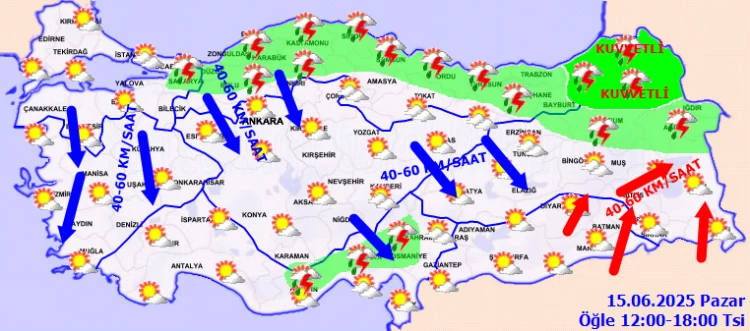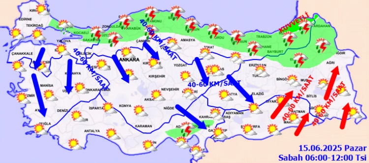 ANKARA (İGFA) - Meteoroloji Genel Müdürlüğü, 15 Haziran Pazar gününe ilişkin hava tahmin raporunu yayımladı.