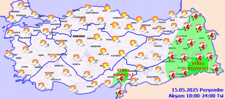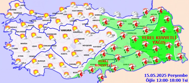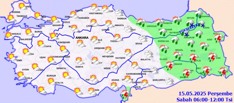 ANKARA (İGFA) - Meteoroloji Genel Müdürlüğü, 15 Mayıs Perşembe gününe ilişkin hava tahmin raporunu yayımladı.