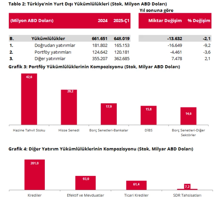 Doğrudan yatırımlar: BIST 100’deki düşüş ve döviz kurlarındaki artış etkisiyle yüzde 9,2 azalarak 165,2 milyar dolar.
