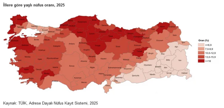 Yaşlı bağımlılık oranı ise 2025’te yüzde 16,2’ye ulaştı.