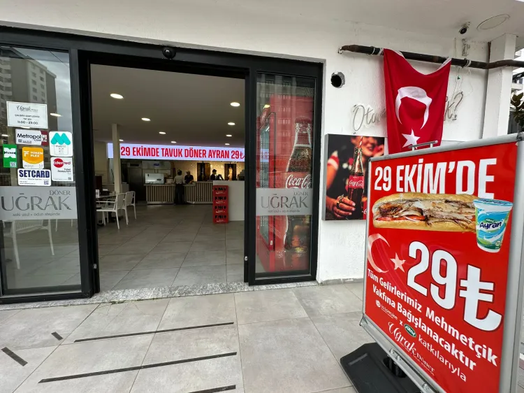 Uğrak Döner 23 Nisan Mahallesi Şubesi 29 Ekim Cumhuriyet Bayramı’na özel anlamlı kampanya ile tavuk döner ayranı ile birlikte sadece 29 TL verilecek.