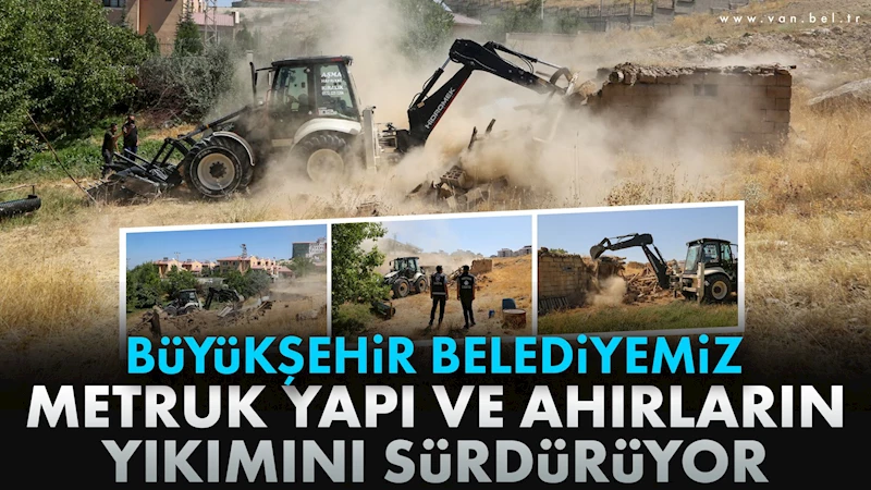 kesimlerinde bulunan ahırlar ile metruk yapıların yıkımına devam ediyor.