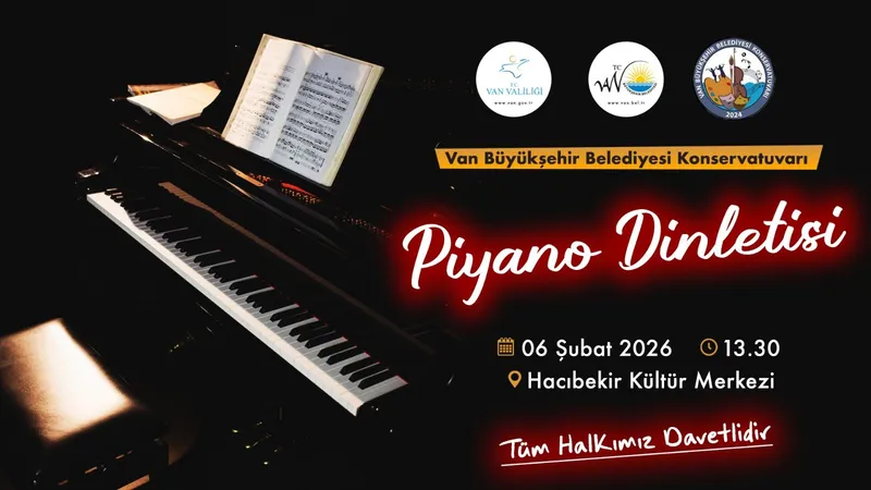 Van Büyükşehir Belediyesi Konservatuvarı piyano öğrencileri, 6 Şubat Cuma günü Hacıbekir Kültür Merkezi Konservatuvar Salonu’nda bir dinleti gerçekleştirecek.