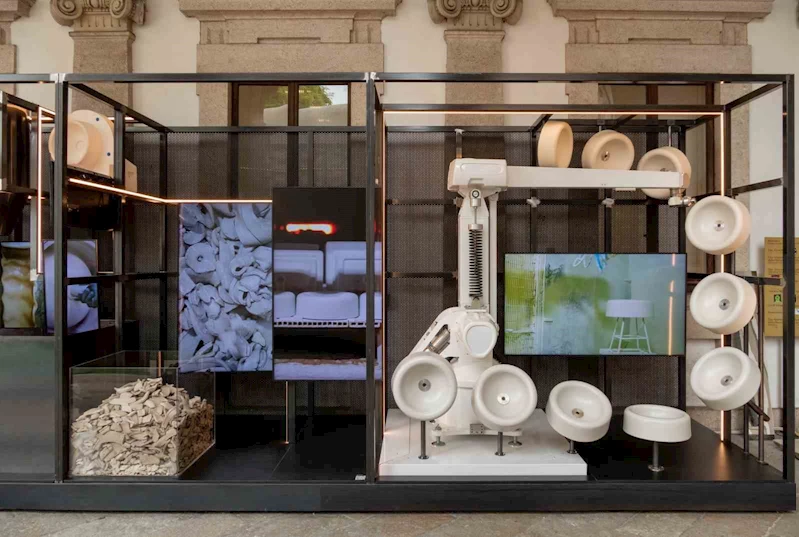 İç mimarlık ve tasarım alanında bir buluşma platformuna dönüşen ünlü Interni dergisinin 70’inci yıl dönümü için oluşturulan enstalasyon, zanaatkarlığı üretim yetkinliği ve endüstriyel üreticilikle birleştirerek, seramikte sürdürülebilir tasarım ve döngüsel ekonominin geleceğini temsil ediyor. ‘Yeniden Seramik’ (Re-Ceramic) adlı enstalasyon, geri dönüştürülmüş malzemelerle onların işlevsel ve estetik ürünlere dönüşümü arasındaki boşluğu kapatan bir anlatı sunuyor.