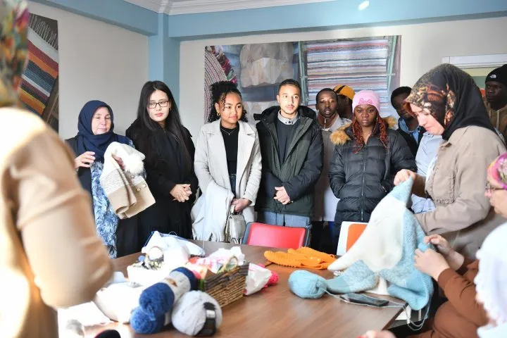 Programın ilk durağı Yeşilyurt Mesleki ve Yaşam Merkezi oldu. Öğrenciler, burada açılan meslek edindirme kurslarını gezerek kursiyerlerden çalışmalar hakkında bilgi aldı. El sanatlarından tekstile, geleneksel üretim tekniklerinden modern mesleki eğitimlere kadar birçok alanda verilen kurslar, yabancı öğrencilerin ilgisini çekti.