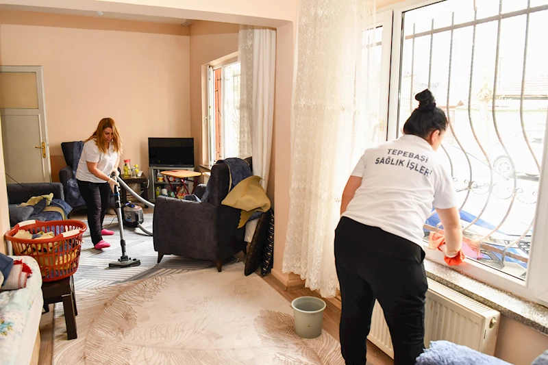 Tepebaşı Belediyesi, Evde Bakım Hizmetleri (TEBEV) ile Ramazan Bayramı öncesinde takip ettiği evlerde bayram temizliği gerçekleştirdi.