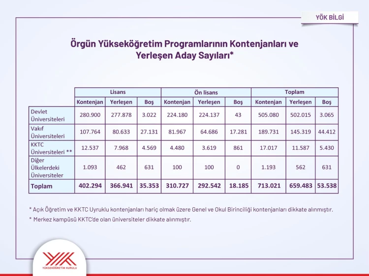 “Hem bugünün hem geleceğin iş gücü piyasasında kritik rol oynayacak yeni programların tamamı doldu" diyen Özvar, "Her 5 adaydan biri ilk tercihine yerleşti. Yüzde 42’si ilk üç tercihinden birini kazandı. İlk 5 tercihinden birine yerleşen adayların oranı yüzde 56 olarak gerçekleşti” dedi.