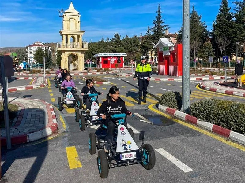 Yozgat İl Emniyet Müdürlüğü Trafik Tescil ve Denetleme Şube Müdürlüğü ekipleri, Trafik Eğitim Parkı ve Ayşe Ilıcak İmam Hatip Ortaokulu'nda öğrencileri bilinçlendirmek amacıyla trafik eğitimi gerçekleştirdi.