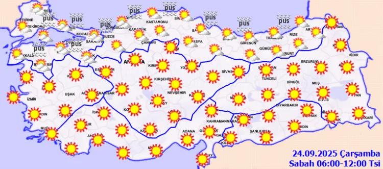 ANKARA (İGFA) - Meteoroloji Genel Müdürlüğü, 24 Eylül Çarşamba gününe ilişkin hava tahmin raporunu yayımladı.