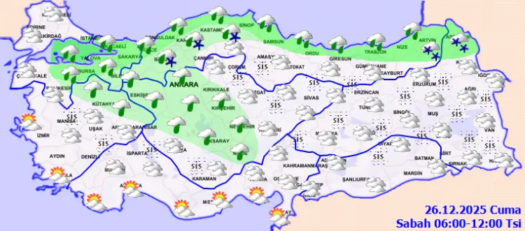 ANKARA (İGFA) - Meteoroloji Genel Müdürlüğü, 26 Aralık Cuma gününe ilişkin hava tahmin raporunu yayımladı.