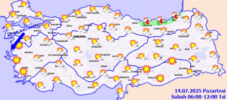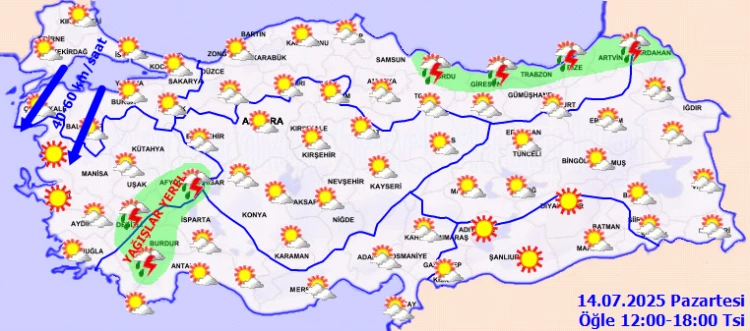 ANKARA (İGFA) - Meteoroloji Genel Müdürlüğü, 14 Temmuz Pazartesi gününe ilişkin hava tahmin raporunu yayımladı.