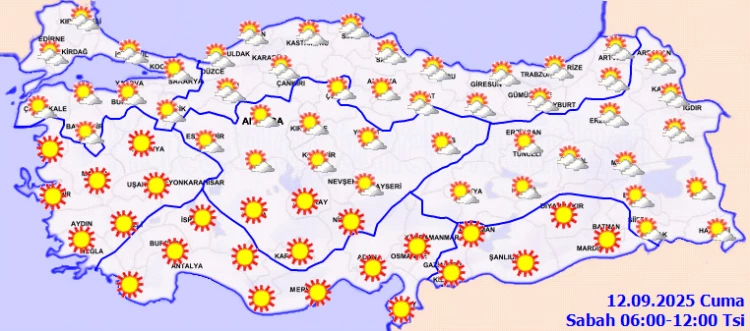 ANKARA (İGFA) - Meteoroloji Genel Müdürlüğü, 12 Eylül Cuma gününe ilişkin hava tahmin raporunu yayımladı.