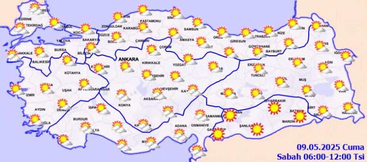 ANKARA (İGFA) - Meteoroloji Genel Müdürlüğü, 9 Mayıs Cuma gününe ilişkin hava tahmin raporunu yayımladı.