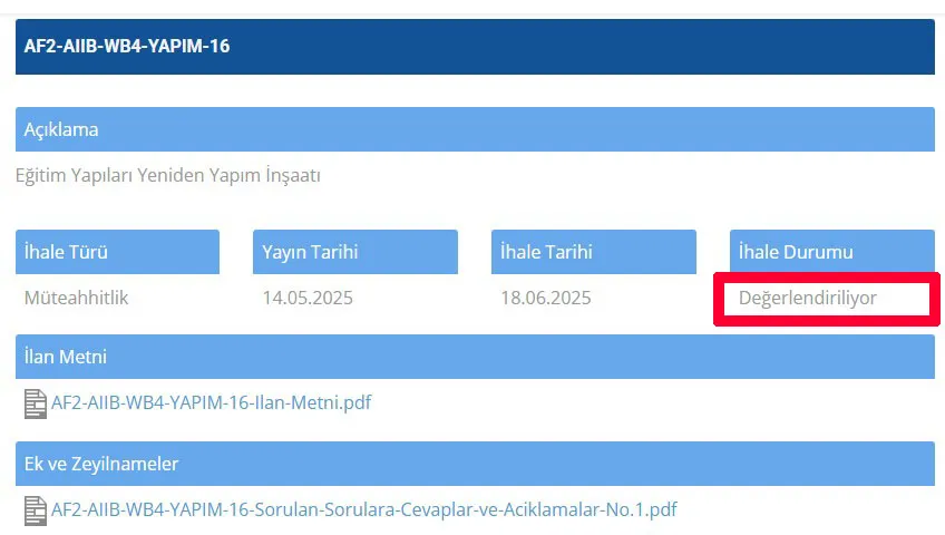 Simashaber yaptığı araştırma ile ihaleyi alan firmaya iş teslimi yapılmadan önce İPKB tarafından inşaatın herhangi bir gecikmeye uğramaması için ihaleyi kazanan firmanın araştırma ve değerlendirme aşamasında olduğu öğrenildi.